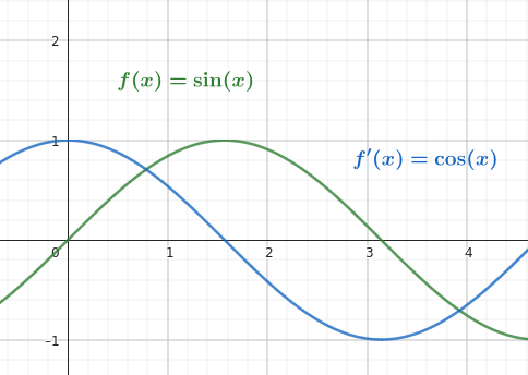 $$ \begin{gather} m_{\tan} = \lim_{x \to a} \frac{f(x) - f(a)}{x - a} \end{gather} $$Put another way, under ideal circumstances, the derivative of function $f$ is a function $f'$ that gives the slopes of lines tangent to $f$. If $x$ is our independent variable and $y$ is our dependent variable, then the derivative can be thought of as the instantaneous rate of change of $y$ with respect to $x$. Since time is often the independent variable, you will often see something like rate of change of velocity with respect to time. The process of finding a derivative is known as differentiation.